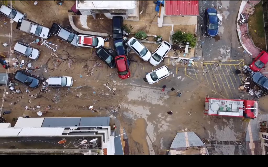 Την Κυριακή, με το πρώτο φως της ημέρας, οι κάτοικοι στη Σητεία προσπαθούσαν να επαναφέρουν την κανονικότητα με σκούπες στα χέρια. Drone έδειχνε από ψηλά το μέγεθος της καταστροφής. Οι εικόνες από κάθε γωνιά της πόλης, δείχνουν το χάος που έφερε η κακοκαιρία.
