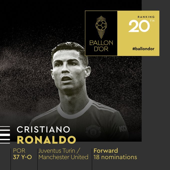 Για πρώτη φορά μετά το 2006 ο Κριστιάνο Ρονάλντο δεν συμπεριλήφθηκε στην τελική δεκάδα στη λίστα της Χρυσής Μπάλας. Συγκεκριμένα, ο Πορτογάλος τερμάτισε στην 20η θέση και τα 24 γκολ που σημείωσε με την φανέλα της Μάντσεστερ Γιουνάιτεντ την σεζόν 2021/22 δεν έφταναν για κάτι καλύτερο.