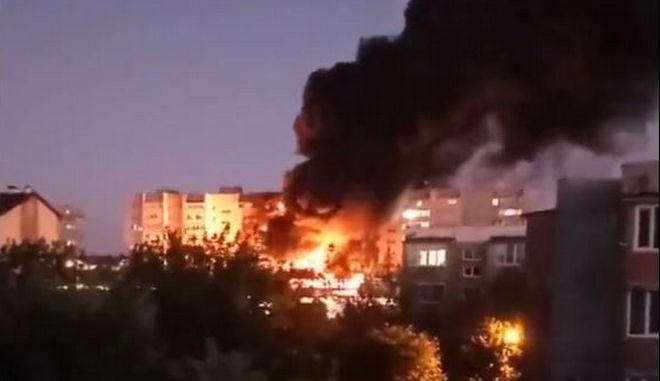Μαχητικό/βομβαρδιστικό Σουχόι Su-34 συνετρίβη στη Γέισκ, προκαλώντας πελώρια πυρκαγιά σε εννιαώροφη πολυκατοικία με περίπου 600 ενοίκους.