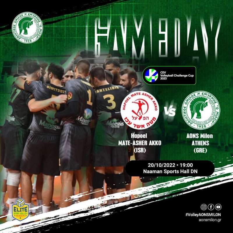 Η ομάδα της Νέας Σμύρνης στον πρώτο εκτός έδρας ευρωπαϊκό αγώνα της ιστορίας της δοκιμάζεται στην έδρα της Χάποελ Μάτε Άσερ. Θέλει νίκη με 3-0 ή 3-1 σετ για να προκριθεί. Αν νικήσει 3-2 σετ θα παιχτεί η πρόκριση σε χρυσό σετ. Σε περίπτωση ήττας θα αποκλειστεί.