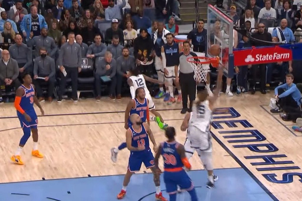 Έκρυψε την μπάλα ο 23χρονος γκαρντ των Γκρίζλις, πριν πασάρει στον Κλαρκ, για ένα εύκολο λέι απ, στην κορυφαία φάση των αγώνων, που έγιναν τα ξημερώματα