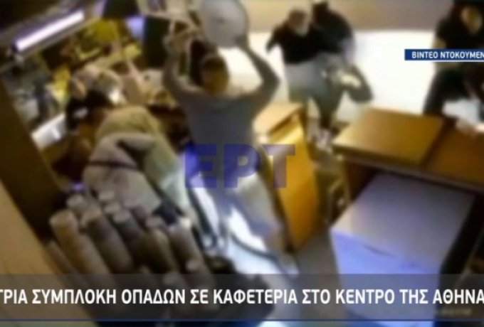Σε βίντεο ντοκουμέντο που προβλήθηκε από την ΕΡΤ, φαίνεται ομάδα ατόμων να εισβάλει σε καφετέρια στο κέντρο της Αθήνας και να επιτίθεται με μπουκάλια και σκαμπό σε άτομα που βρίσκονταν εκείνη την ώρα στο εσωτερικό της.