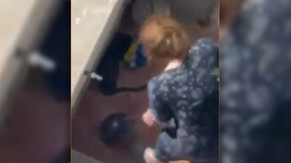 Την ίδια ώρα, ένας γείτονας της φωνάζει «μην το πετάς έξω, θα μας φέρουν την αστυνομία».