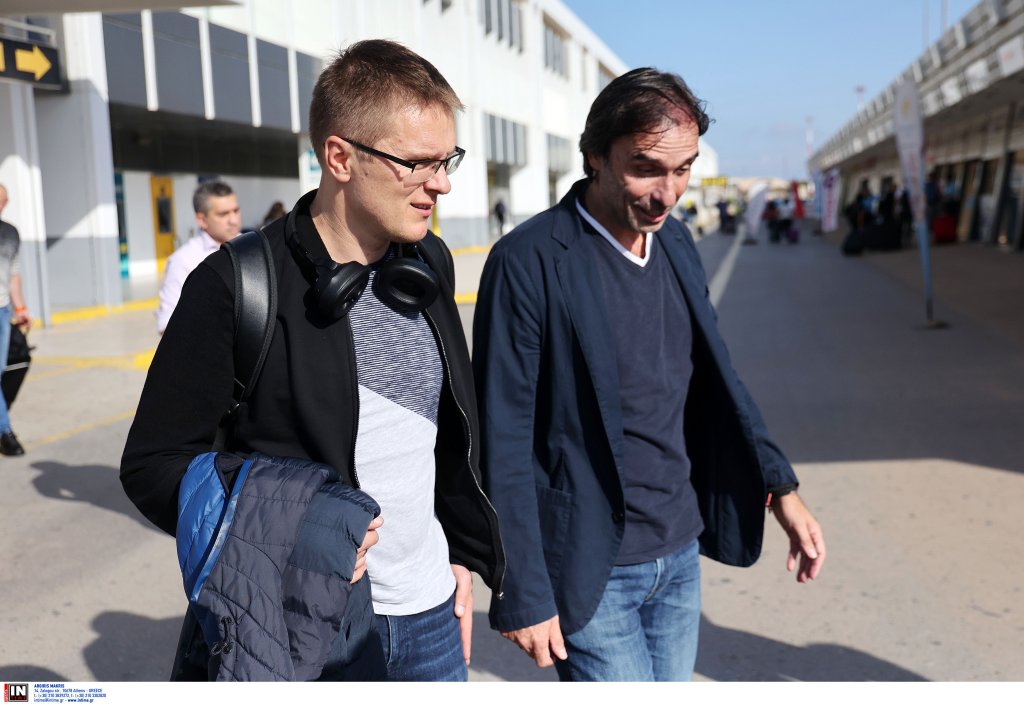 Στο αεροδρόμιο τον υποδέχτηκε ο Ηλίας Πουρσανίδης, ενώ μαζί με τον Νταμπράουσκας ήρθε και ο Μάριους Σκιντέρις, ο οποίος θα είναι άμεσως συνεργάτης του.