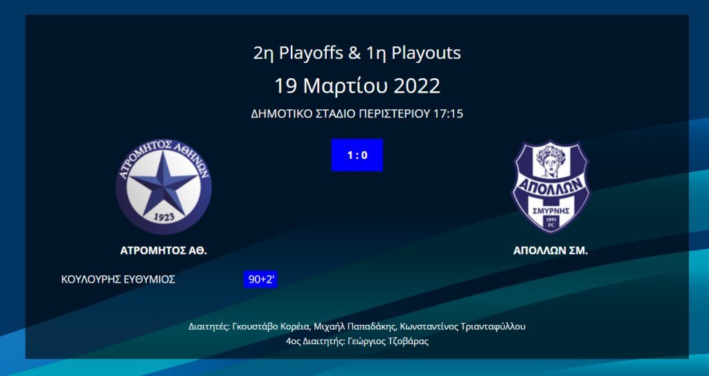 Και τελικά, αφού «είναι επισφαλές να ορίζονται αγώνες μπάσκετ και ποδοσφαίρου την ίδια ημέρα και σχεδόν την ίδια ώρα στα δύο γήπεδα («Ανδρέας Παπανδρέου» και «Γήπεδο Ατρομήτου»), πώς ορίστηκαν πριν από μερικούς μήνες (19/03/2022) αγώνας μπάσκετ (Περιστέρι – ΠΑΟΚ) και αγώνας ποδοσφαίρου (Ατρόμητος – Απόλλων Σμύρνης) ίδια ημέρα και σχεδόν την ίδια ώρα, ήτοι 16:30 και 17:15; (όπως φαίνεται στις φωτογραφίες στο gallery);
