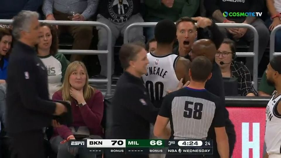 Ο κόουτς των Νετς θεώρησε πως ο Αντετοκούνμπο έπρεπε να χρεωθεί με επιθετικό φάουλ, κάτι που δεν συνέβη, με αποτέλεσμα να γίνει έξαλλος με τους διαιτητές