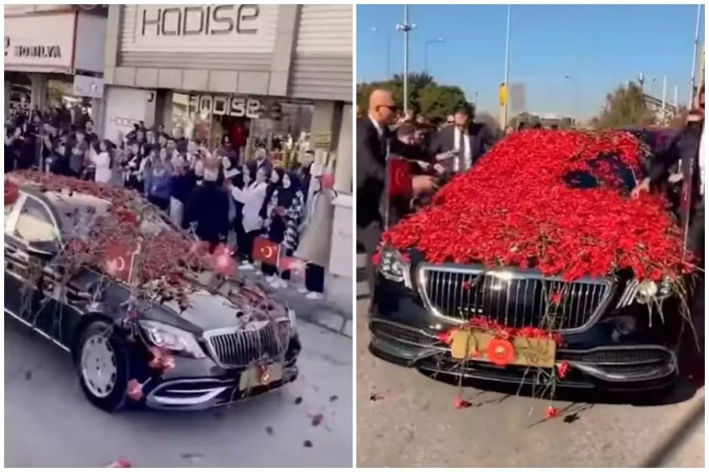 Οπαδοί του Ρετζέπ Ερντογάν μάλιστα κάλυψαν με τόνους ροδοπέταλα το αυτοκίνητό του, ενώ ο πρόεδρος της Τουρκίας κινούταν με την λιμουζίνα στην Άγκυρα. Δεν έμειναν όμως εκεί, καθώς του τραγούδησαν και… προεκλογικό τραγούδι!