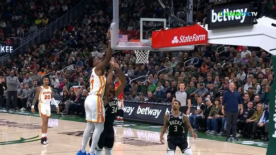 Μετά από άστοχο σουτ συμπαίκτη του, ο 21χρονος φόργουορντ των Χοκς σηκώθηκε μπροστά στον Έλληνα φόργουορντ και κάρφωσε- Δευτερόλεπτα αργότερα, ο Αντετοκούνμπο πήρε τη ρεβάνς, με καλάθι και φάουλ
