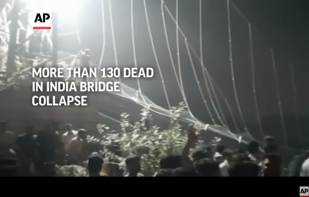 Την στιγμή της κατάρρευσης της πεζογέφυρας στην Ινδία από την οποία έχουν χάσει τη ζωή τους, μέχρι στιγμής, 132 άνθρωποι, κατέγραψε κάμερα ασφαλείας.