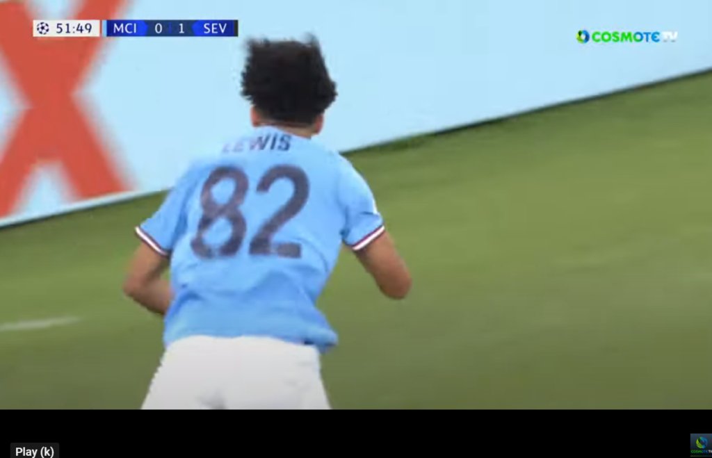 Στο Μάντσεστερ Σίτι-Σεβίλλη, για την έκτη αγωνιστική των ομίλων του Τσάμπιονς Λιγκ, ο Ρίκο Λιούις ξεκίνησε στη βασική ενδεκάδα της πρωταθλήτριας Αγγλίας και, στο 52ο λεπτό, βρήκε δίχτυα.