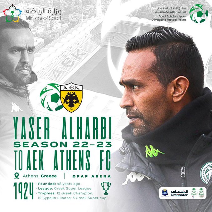 Η ΠΑΕ ΑΕΚ συμφώνησε με το υπουργείο αθλητισμού της Σαουδικής Αραβίας για συνεργασία σε αναπτυξιακό επίπεδο, όπως έκανε επίσημα γνωστό η Ένωση. Στο περιθώριο αυτής της συνεργασίας εντάχθηκε στο τεχνικό τιμ της ΑΕΚ Β για εκπαιδευτικούς σκοπούς ο Γιάσερ Αλ Χαρμπί, ο οποίος είναι κάτοχος UEFA B.