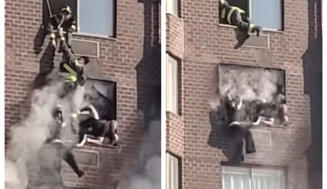Υπεράνθρωπη προσπάθεια κατέβαλαν οι Πυροσβέστες στο Μανχάταν για να σώσουν μια γυναίκα από τη φωτιά που ξέσπασε σε πολυκατοικία.