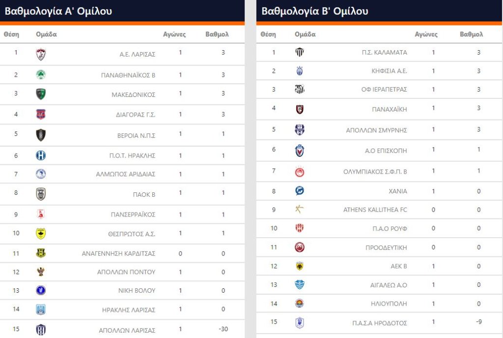 Η διοργανώτρια Αρχή της Super League 2 ενημέρωσε τις βαθμολογίες στους δύο ομίλους της, εμφανίζοντας τον Απόλλωνα Λάρισας με αφαίρεση 30 βαθμών και τον Ηρόδοτο με -9.