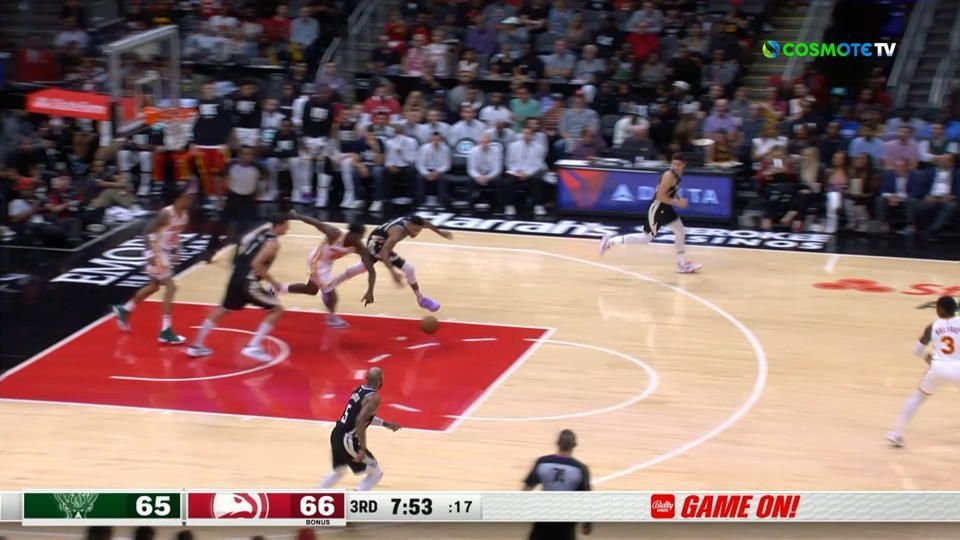 Οι παίκτες των Μπακς και Χοκς αδυνατούσαν να κρατήσουν την μπάλα στην κατοχή τους, μέχρι που, εκείνη, κατέληξε στον 28χρονο σέντερ των Χοκς, που τελείωσε τη φάση με κάρφωμα