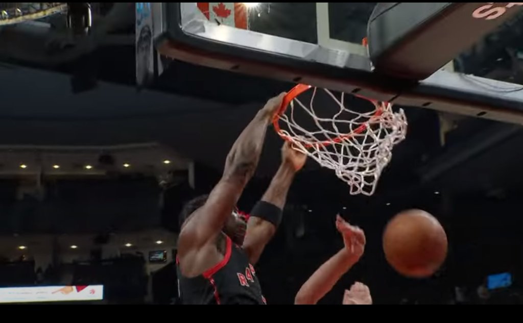 Ο φόργουορντ των Ράπτορς πήρε φόρα και, μπροστά στα απλωμένα χέρια παικτών των Ρόκετς, κάρφωσε την μπάλα στο καλάθι, στη πιο θεαματική φάση, από τους αγώνες που έγιναν τα ξημερώματα