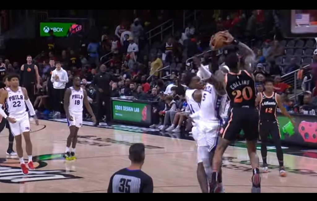 Με πάσα πίσω από το κέντρο, ο γκαρντ των Χοκς βρήκε τον Κόλινς και ο 25χρονος φόργουορντ κάρφωσε την μπάλα, στο καλάθι των Σίξερς, στην κορυφαία φάση των αγώνων, που έγιναν τα ξημερώματα, στο NBA
