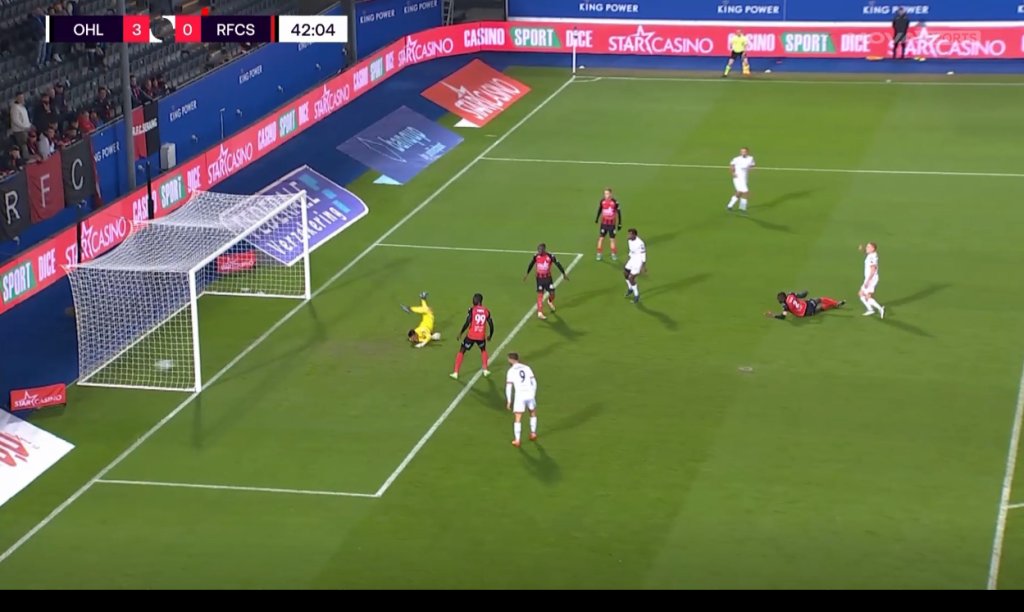 Στο 23ο λεπτό, η μπάλα έφτασε στον Ντε Νόρε, εκείνος, με πλάτη στο τέρμα, πάσαρε στον Μάερτενς, με τον 27χρονο μέσο να πλασάρει εξαιρετικά, ανοίγοντας το σκορ για τη Λέουβεν. Έξι λεπτά αργότερα, έπειτα και από χρήση του VAR, οι γηπεδούχοι διπλασίασαν τα τέρματά τους, χάρη σε εύστοχη εκτέλεση πέναλτι του Μάριο Γκονζάλες. Τα πράγματα έγιναν χειρότερα, για τη Σερένγκ, όταν, στο 35ο λεπτό έμεινε με δέκα παίκτες, αφού ο Σισοκό είδε δεύτερη κίτρινη κάρτα, μέσα σε ένα επτάλεπτο, και αποβλήθηκε. Με άλλα δυο γκολ, πριν το φινάλε του ημιχρόνου, η Λέουβεν εκμεταλλεύτηκε το αριθμητικό της πλεονέκτημα. Στο 42', ο στόπερ Οπαρέ της Σερένγκ έκοψε μια σέντρα, αλλά, το διώξιμό του ήταν κάκιστο, με την μπάλα να στρώνεται στον Κάσπερ Ντε Νόρε και εκείνος να κάνει το 3-0. Στις καθυστερήσεις του πρώτου μέρους, η Έουπεν κέρδισε δεύτερο πέναλτι, την εκτέλεση ανέλαβε, αυτή τη φορά, ο Κιέν, που έκανε το 4-0. Με τη συμπλήρωση 90 λεπτών στο ματς, ο Ναχόν Ενσινγκί, με κεφαλιά, διαμόρφωσε το τελικό 5-0.