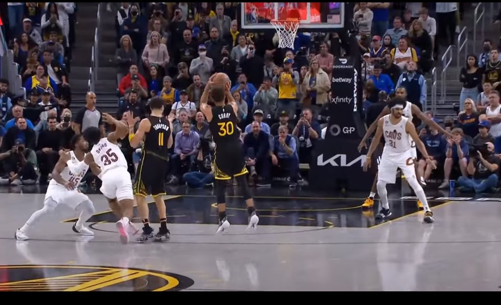 Στα τελευταία 1:18 του αγώνα, ο Στεφ Κάρι έβαλε 10 πόντους και οι Γκόλντεν Στέιτ Γουόριορς λύγισαν την αντίσταση των Κλίβελαντ Καβαλίερς, με τον ηγέτη τους να πετυχαίνει 40 πόντους.