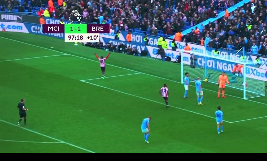 Το ματς δεν βγήκε καθόλου στην Σίτι, ο Χάαλαντ ήταν μακριά από τον καλό του εαυτό πουθενά, η αμυντική πειθαρχία των φιλοξενούμενων έπαιξε καθοριστικό ρόλο και μάλιστα στο 72' αν δεν ήταν ο Λαπόρτ, ο Τόνεί θα μπορούσε να έχει σκοράρει σε κενή εστία με προβολή. Όμως, στο 7ο λεπτό των καθυστερήσεων σε αντεπίθεση της Μπρέντφορντ, όπου παρά την επιστροφή πέντε παικτών της Σίτι στην περιοχή, ο Τζος Ντασίλβα έκανε το γύρισμα και ο Τόνεϊ πανεύκολα διαμόρφωσε το τελικό 2-1.