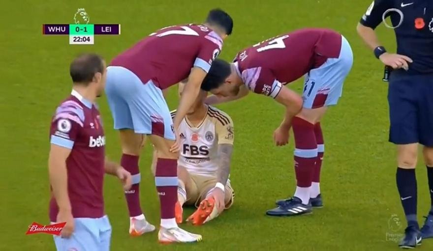 Μάλιστα, πάνω από τον Μάντισον την ώρα που ήταν πεσμένος στο χορτάρι, έτρεξε ο χαφ της Γουέστ Χαμ και συμπαίκτης του στην εθνική Αγγλίας, Ντέκλαν Ράις, ώστε να δει τι συμβαίνει.