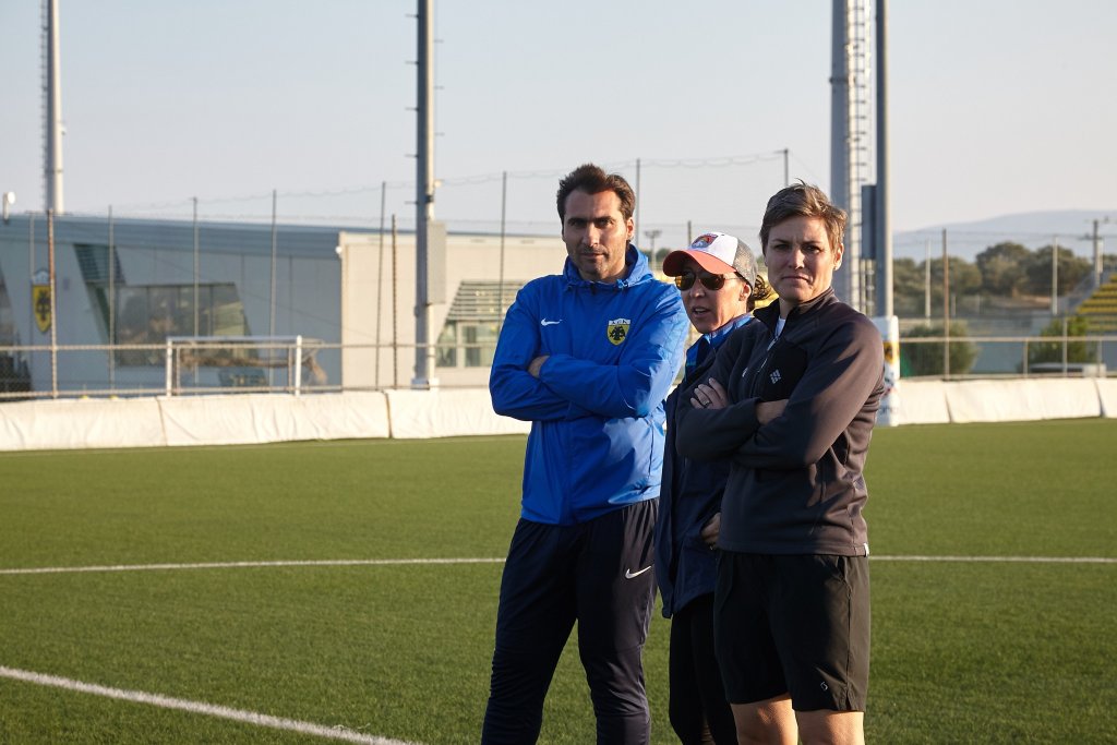 Οι δύο αθλήτριες και νυν προπονήτριες ξεναγήθηκαν από τον Αθλητικό Διευθυντή και Υπεύθυνο Εκπαίδευσης Δικτύου της Ακαδημίας κ. Ηλία Κυριακίδη και παρακολούθησαν συνάντηση του προπονητικού επιτελείου της ομάδας Κ19 και μέρος της προπόνησής της. Κατά τη διάρκεια της επίσκεψής τους είχαν την ευκαιρία να ενημερωθούν για την οργανωτική και λειτουργική δομή της Ακαδημίας και να ανταλλάξουν απόψεις και τεχνικές που αφορούν την εκπαίδευση και προπόνηση νεαρών αθλητών και αθλητριών, δείχνοντας ιδιαίτερο ενδιαφέρον για την ανθρωποκεντρική προσέγγιση και τις κοινωνικές αξίες που ακολουθεί η Ακαδημία της ΑΕΚ. Από τη συζήτηση δεν έλειψε η αναφορά στο ποδόσφαιρο γυναικών και στη συμβολή της Ακαδημίας στην ενίσχυση του, αλλά και σε άλλες κοινωνικές δράσεις που αφορούν την αξιοποίηση του ποδοσφαίρου ως μέσου κοινωνικής ανάπτυξης.