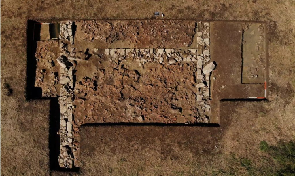 αποκαλύφθηκε τμήμα θεμελίωσης ενός μεγάλου κτιρίου πλάτους 9,40 μ., του