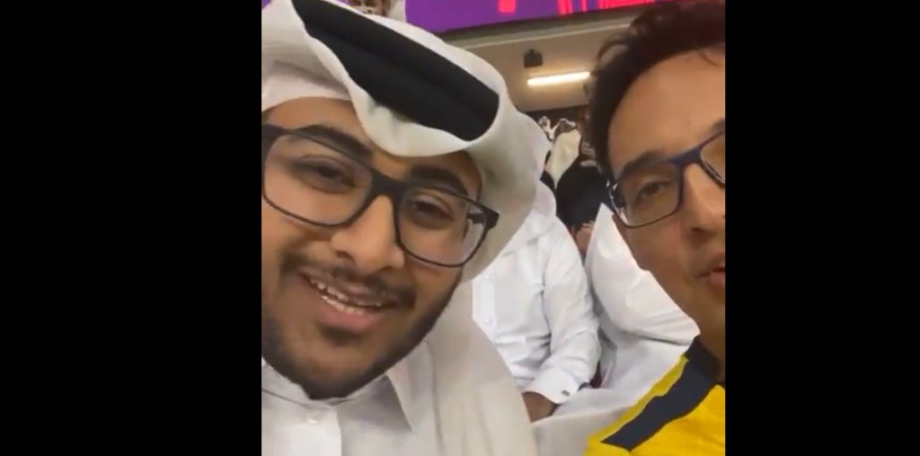 Οι δύο φίλαθλοι τα βρήκαν μεταξύ τους κι ανέβασαν νέο βίντεο στο οποίο εμφανίζονται σε διπλανά καθίσματα, με τον Καταριανό οπαδό να πιάνει μάλιστα το χέρι του φίλου του Εκουαδόρ και μαζί να παρακολουθούν το υπόλοιπο του αγώνα.