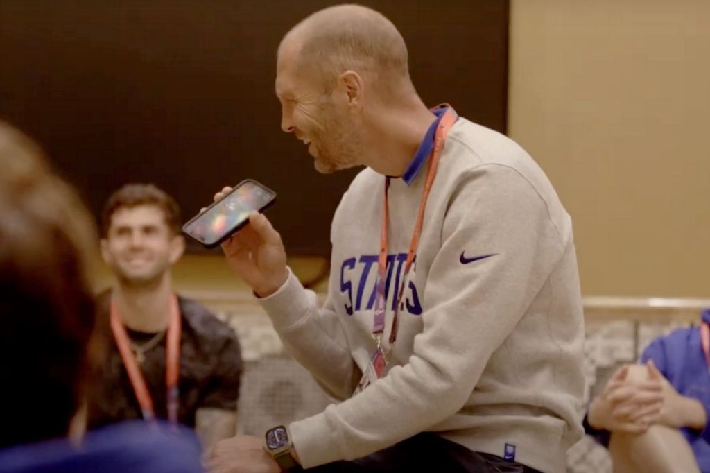 Ο Αμερικανός πρόεδρος κάλεσε τον προπονητή των ΗΠΑ, Γκρεγκ Μπερχάλτερ, από τον οποίο μάλιστα ζήτησε και μία... θέση στην 11άδα! "Κόουτς βάλε με μέσα, είμαι έτοιμος να παίξω", του είπε αρχικά, πριν απευθυνθεί στους παίκτες της ομάδας οι οποίοι γέλασαν με την ατάκα του.