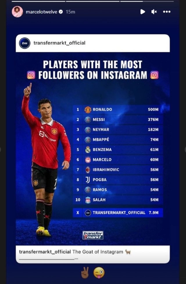 Ο Βραζιλιάνος μπακ του Ολυμπιακού έκανε Insta Story για το γεγονός πως είναι στους παίκτες με τον πιο μεγάλο αριθμό followers στο Instagram του.