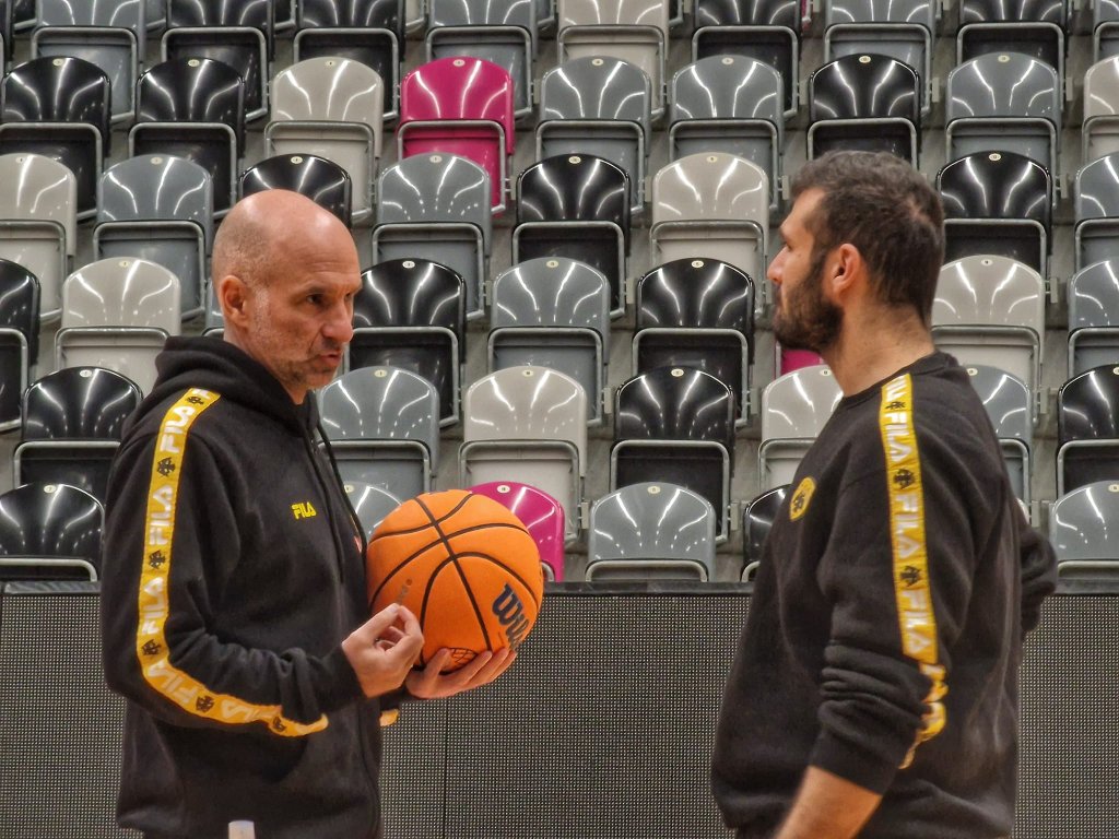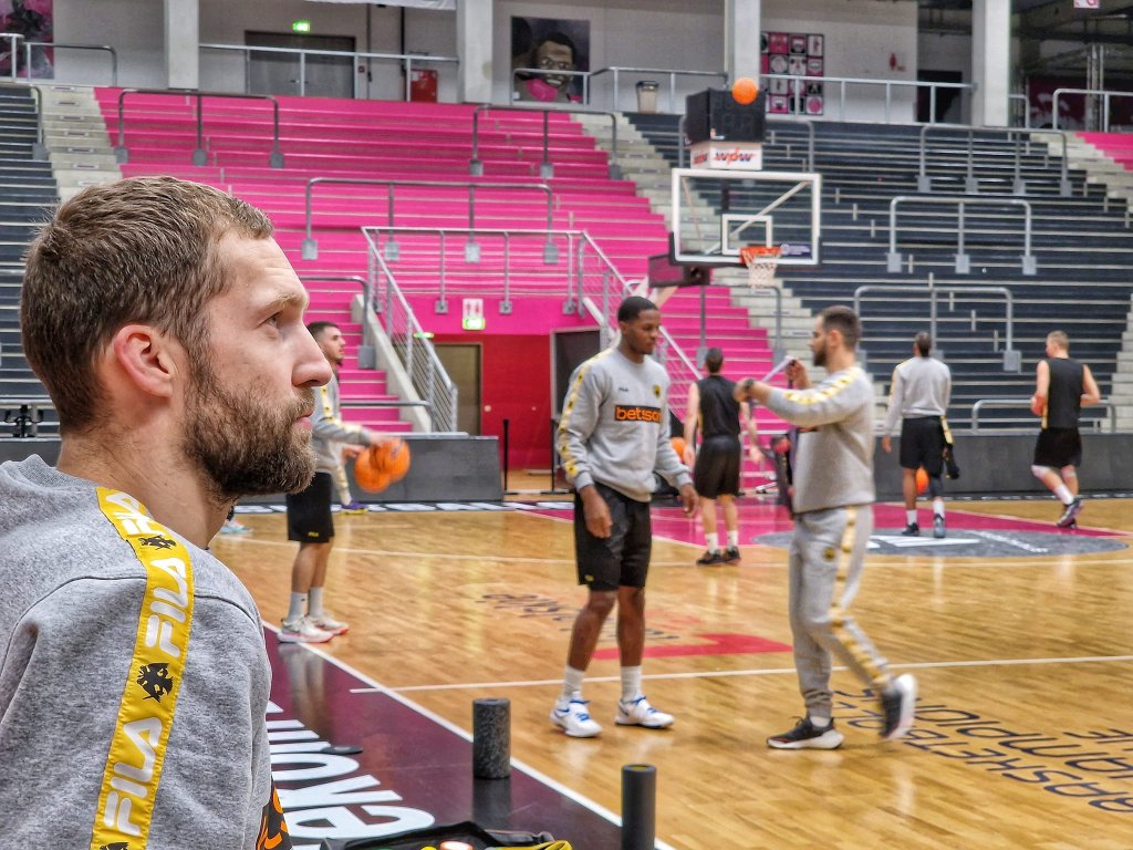 Λίγες ώρες μετά την άφιξη της ομάδας στην Γερμανία η ομάδα βρέθηκε στο Telekom Dome με τον Έλληνα τεχνικό και τους παίκτες του να προετοιμάζονται στην έδρα που θα αντιμετωπίσουν την ομάδα του Τουόμας Ίσαλο το βράδυ της Τετάρτης.