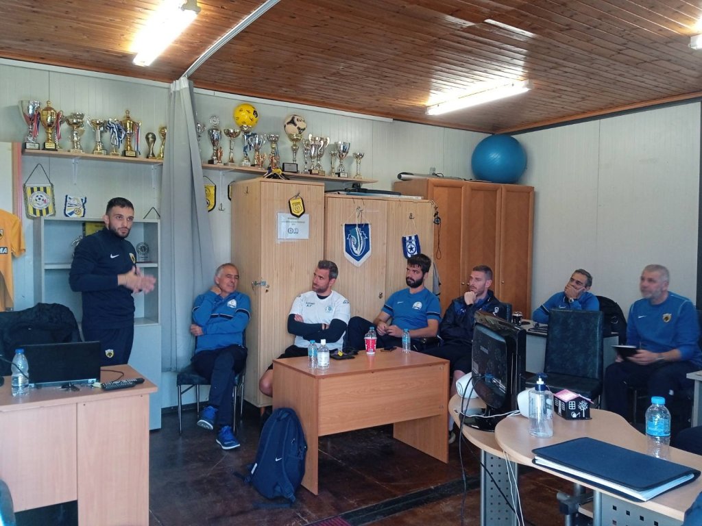 Οι υπεύθυνοι της ΑΕΚ επέβλεψαν τις προπονήσεις των τμημάτων της Ακαδημίας Ποδοσφαίρου Σούδας και πραγματοποίησαν ενημερωτικές ομιλίες-συζητήσεις με τους προπονητές της, εστιάζοντας ο καθένας σε θέματα που άπτονταν στο αντικείμενό του, δηλαδή στην ανίχνευση ταλέντων (Ρούσσος) και στη σημασία της σωστής προθέρμανσης (Τσενόγλου).