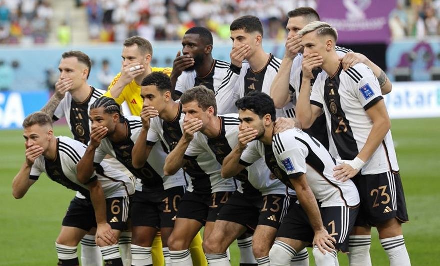 Η εθνική ομάδα της Γερμανίας προχώρησε στην κίνηση του τουρνουά, ως τώρα. Κατά τη διάρκεια της ομαδικής φωτογράφισης πριν το ματς με την Ιαπωνία, οι ποδοσφαιριστές έπιασαν το στόμα τους και αντέδρασαν ουσιαστικά στην «φίμωση» της FIFA προς τις ομοσπονδίες, απαγορεύοντάς τους να χρησιμοποιούσαν περιβραχιόνια με το «One Love» σήμα.