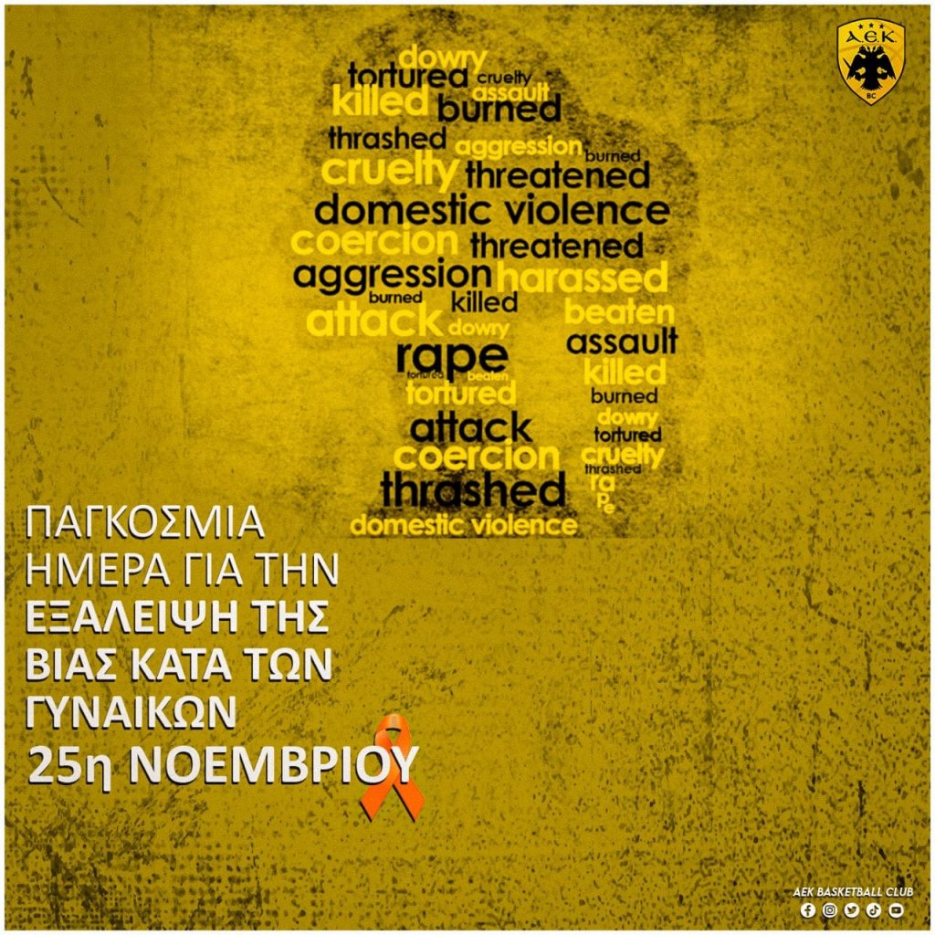 Η AEK BC στηρίζει την Παγκόσμια Ημέρα για την εξάλειψη της Βίας κατά των Γυναικών.