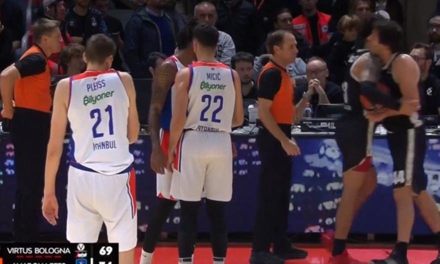 Με 4:25 να απομένουν για το φινάλε και την Εφές να προηγείται 69-74, μέσα στην Μπολόνια, ο διαιτητής Νταμίρ Γιαβόρ χρέωσε, σωστά, με φάουλ τον Σέρβο γκαρντ.