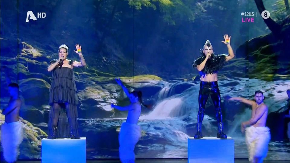 Εμφάνιση με μήνυμα από τον Ιωάννη Μελισσανίδη και την Μελίνα Μακρή στη σκηνή του J2US όπου τραγούδησαν το Born This Way.