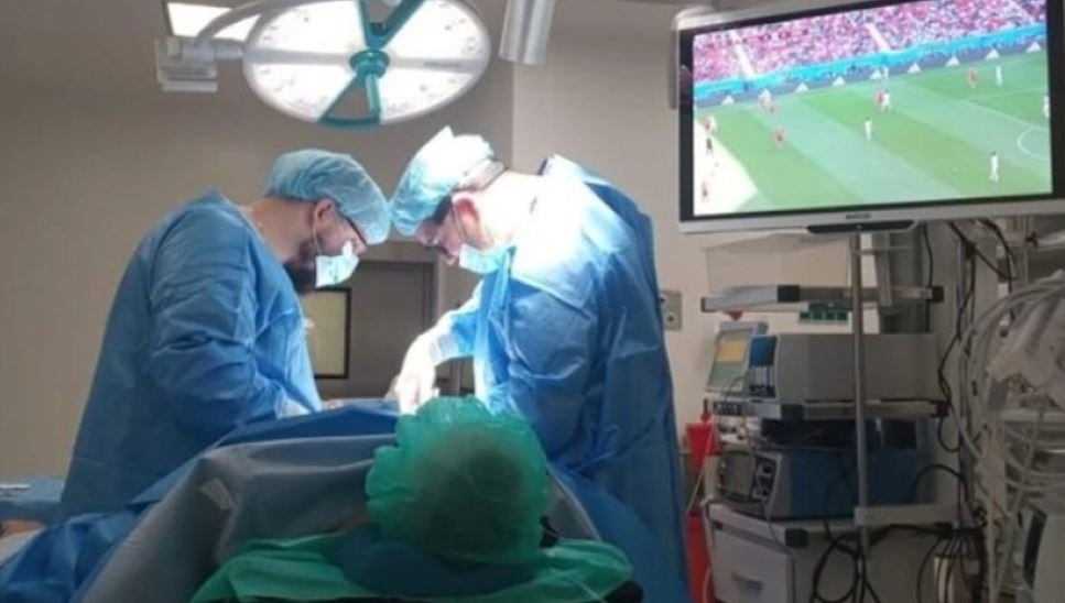 Μια πολύ ασυνήθιστη φωτογραφία δημοσίευσε στο προφίλ του στα social media, το Ανεξάρτητο Κέντρο Δημόσιας Φροντίδας Υγείας του Υπουργείου Εσωτερικών και Διοίκησης στο Κιέλτσε της Πολωνίας. Στο κλικ φαίνονται δυο γιατροί να χειρουργούν και ο ασθενής να συνεχίζει να παρακολουθεί το παιχνίδι της Ουαλίας με το Ιράν για το Παγκόσμιο Κύπελλο κατά τη διάρκεια της επέμβασης κι ενώ βρισκόταν υπό ραχιαία αναισθησία! «Σε εμάς, οι ασθενείς λαμβάνουν υπηρεσίες. Όλοι οι κύριοι υπό ραχιαία αναισθησία είναι ευχαριστημένοι», είναι η λεζάντα που χρησιμοποίησε το νοσοκομείο!