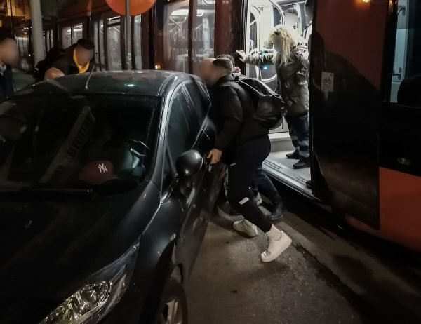Τη λύση στο πρόβλημα και την ταλαιπωρία που δημιουργήθηκε έδωσαν επιβάτες του τραμ οι οποίοι… σήκωσαν στα χέρια το αυτοκίνητο προκειμένου να το μετακινήσουν και να απεγκλωβίσουν τον συρμό.