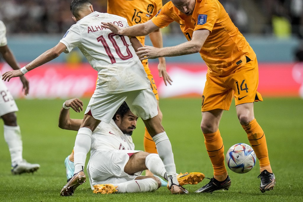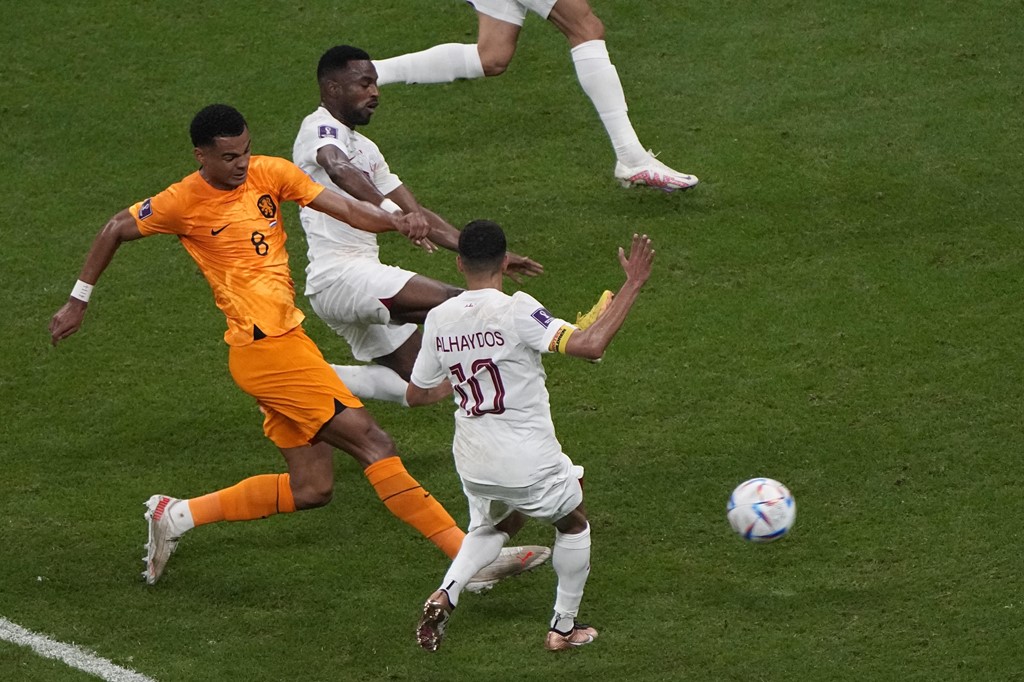 Στο 4ο λεπτό μετά από φάση διαρκείας στα καρέ του Κατάρ, ο Μπλιντ πλάσαρε από αριστερά αλλά ο Μπαρσάμ είπε όχι και στο 15’ ο Ντεπάι δοκίμασε το γυριστό μέσα από την περιοχή αλλά η μπάλα πέρασε ψηλά. Η Ολλανδία πίεζε σταδιακά το Κατάρ και στο 26ο λεπτό ο Χάκπο άλλαξε με τον Κλάασεν, πάτησε περιοχή και από το ύψος του πέναλτι πλάσαρε για το 1-0.