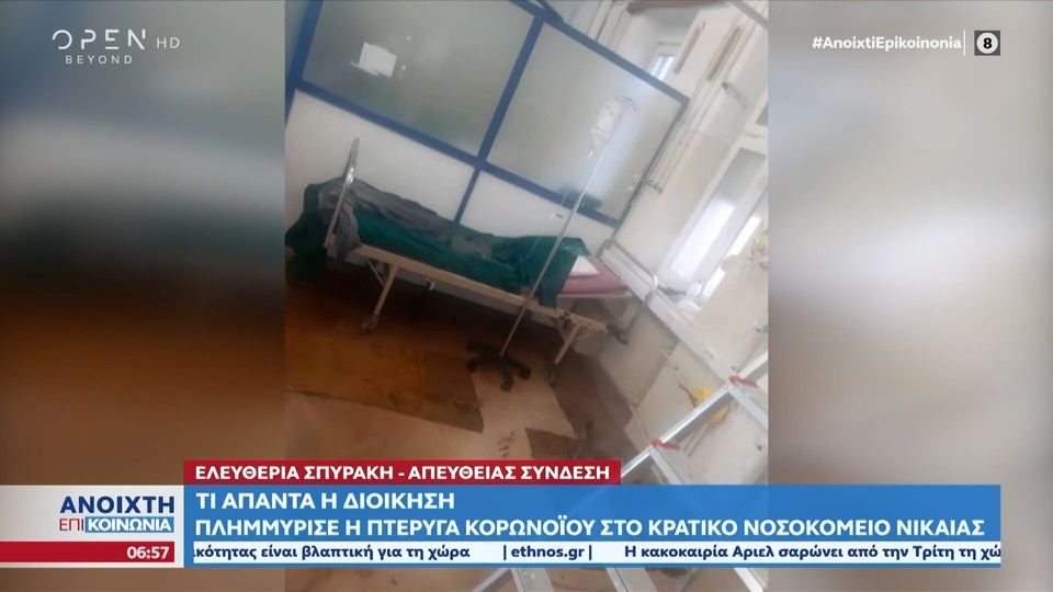 Πλημμύρισε η πτέρυγα κορoναϊού στο Κρατικό Νίκαιας (VIDEO)