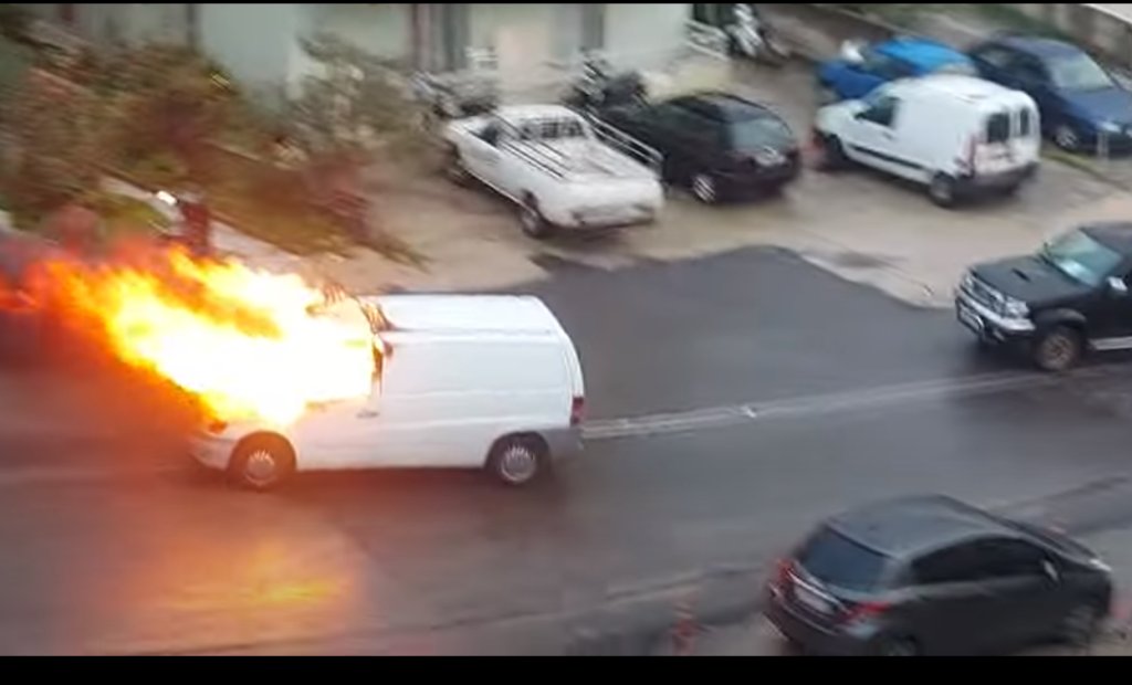 Σε ένα αδιανόητο βίντεο-ντοκουμέντο που έφερε στο φως η ιστοσελίδα goodnet.gr, φαίνεται ένα λευκό βαν να τυλίγεται εν κινήσει στις φλόγες, το πρωί της Πέμπτης (1/12) στην περιοχή του Μασταμπά Ρεθύμνου, στο ύψος του ΙΚΑ.