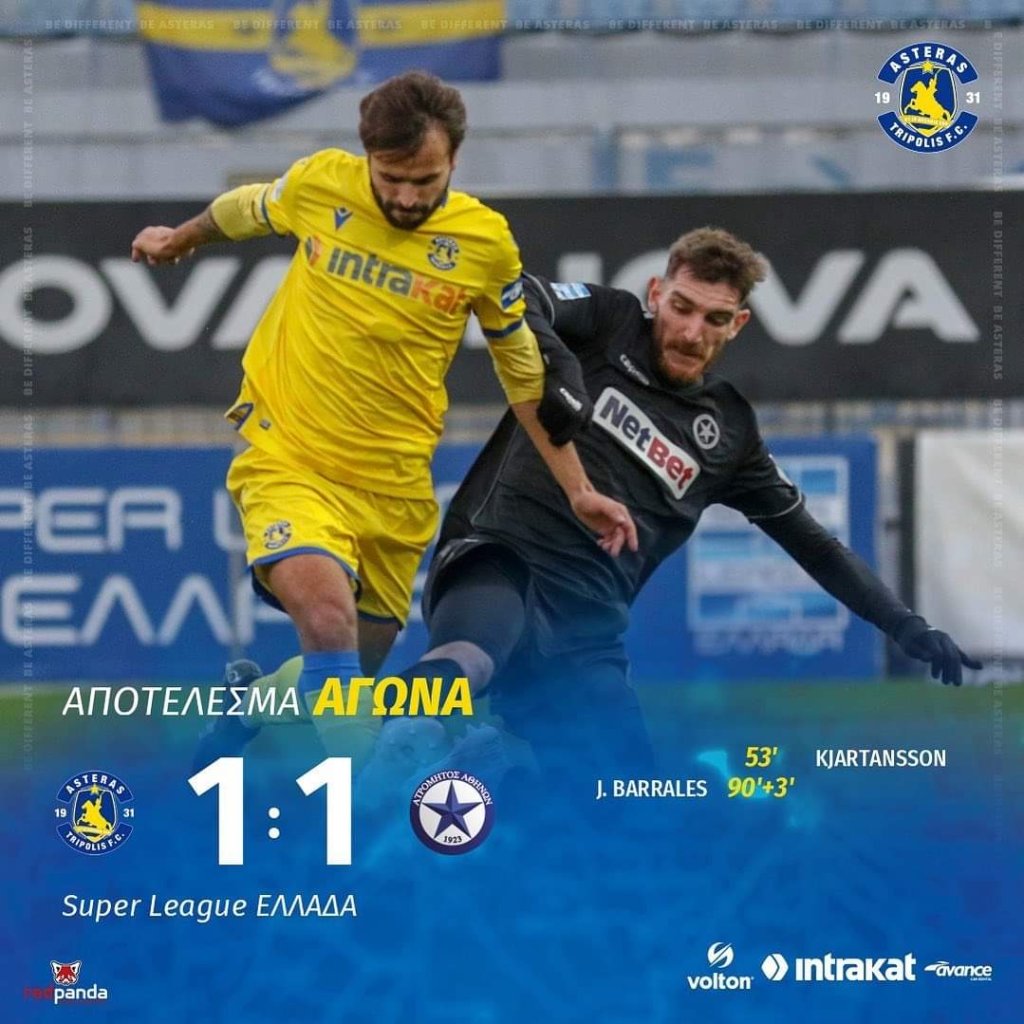 Ο Ιγκλέσιας έσωσε την ομάδα του σε αντεπίθεση του Ατρομήτου κόβοντας τον Ροτάριου και… απέτρεψε το 2-0, με τους Αρκάδες να φτάνουν στην ισοφάριση στην τελευταία φάση του αγώνα. Στο 90’+3’ ο Τασουλής εκτέλεσε το φάουλ, ο Μάριτς έδιωξε προσωρινά αλλά ο Μπαράλες ήταν εκεί για να πάρει το ριμπάουντ και να σκοράρει με κεφαλιά σε κενή εστία, διαμορφώνοντας το τελικό 1-1.