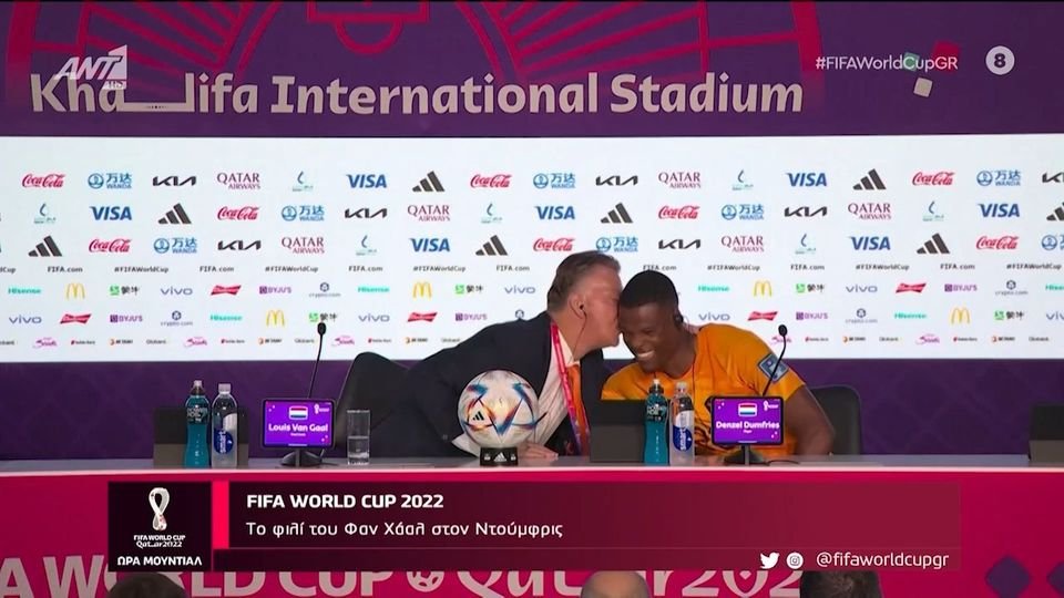 Ο 26χρονος διεθνής μέσος της Ίντερ βρέθηκε στη συνέντευξη Τύπου, μετά το παιχνίδι, δίπλα στον Λουίς Φαν Χάαλ, με τον ομοσπονδιακό προπονητή της Ολλανδίας να επιβραβεύει, με ένα φιλί, τον Ντούμφρις.