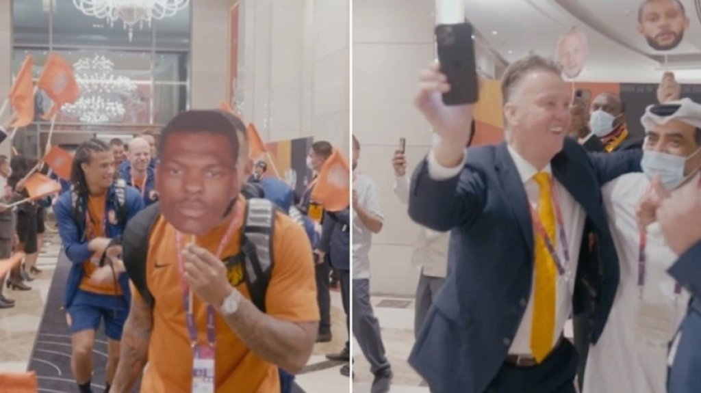 Στους ρυθμούς του "Waka Waka" της Σακίρα, ο Μέμφις Ντεπάι έκανε είσοδο με χαρτόνι που είχε το πρόσωπο του MVP, Ντένζελ Ντούμφρις, ο τελευταίος μαζί με τους Μπέρχαους και Φαν Ντάικ μπήκαν ακόμα πιο δυναμικά στο πάρτι, για να ξεπροβάλλει ξαφνικά ο Φαν Χάαλ, χορεύοντας με απίθανο στυλ την ώρα που έβγαζε βίντεο με το κινητό του κι αγκαλιάζοντας όποιον έβρισκε μπροστά του.