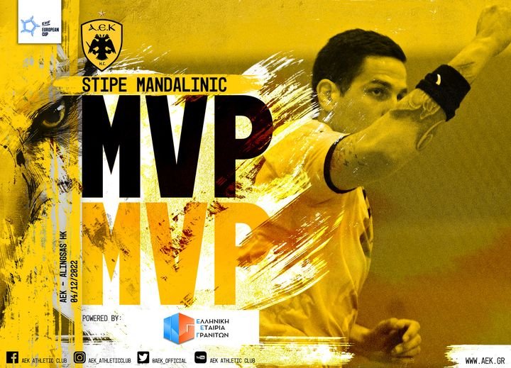 Η ομάδα χάντμπολ της ΑΕΚ επικράτησε με 32-27 της Αλίνγκσας στον πρώτο αγώνα του 3ου Γύρου του EHF European Cup και έκανε βήμα πρόκρισης στους «16» της διοργάνωσης. Η Ένωση σε αυτή την αναμέτρηση είχε κορυφαίο τον Στίπε Μαντάλινιτς, ο οποίος σκόραρε ασταμάτητα και ώθησε την ομάδα χάντμπολ στη νίκη. Έτσι, όπως είναι λογικό ο Κροάτης ίντερ κέρδισε τον τίτλο του MVP «Ελληνική Εταιρία Γρανιτών», μετά το τέλος της αναμέτρησης.