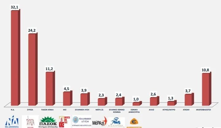 Το 64.6% θεωρεί ότι στις ερχόμενες εκλογές θα νικήσει η Ν.Δ έναντι 19.2% που πιστεύει ότι θα νικήσει ο ΣΥΡΙΖΑ. Ταυτόχρονα, σε σχέση με τι Κυβέρνηση θα προτιμούσαν να προκύψει από τις ερχόμενες εκλογές , το 29.1% δηλώνει αυτοδύναμη Ν.Δ, το 10.5% Κυβέρνηση συνεργασίας ΣΥΡΙΖΑ – ΠΑΣΟΚ, το 10.6% αυτοδύναμη Κυβέρνηση ΣΥΡΙΖΑ, το 8.3% Κυβέρνηση Συνεργασίας Ν.Δ- ΠΑΣΟΚ, το 6.4% μια Κυβέρνηση και των τριών, το 4.9% Κυβέρνηση τεχνοκρατών , το 2.7% Κυβέρνηση Ν.Δ – ΕΛΛΗΝΙΚΗΣ ΛΥΣΗΣ κ.λ.π.