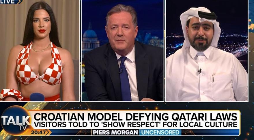 Η πρώην Μις Κροατία βρέθηκε αντιμέτωπη σε "παράθυρο" του talk show του Πιρς Μόργκαν με Καταριανό επιχειρηματία, ο οποίος της είχε ασκήσει προ ημερών κριτική μιλώντας για ασέβεια προς τη χώρα του.