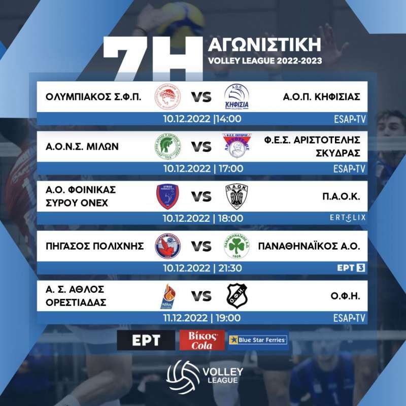 Ανακοινώθηκε το πρόγραμμα, οι διαιτητές, οι τηλεοπτικές μεταδόσεις της 7ης αγωνιστικής στο πρωτάθλημα Volley League 2022-23: