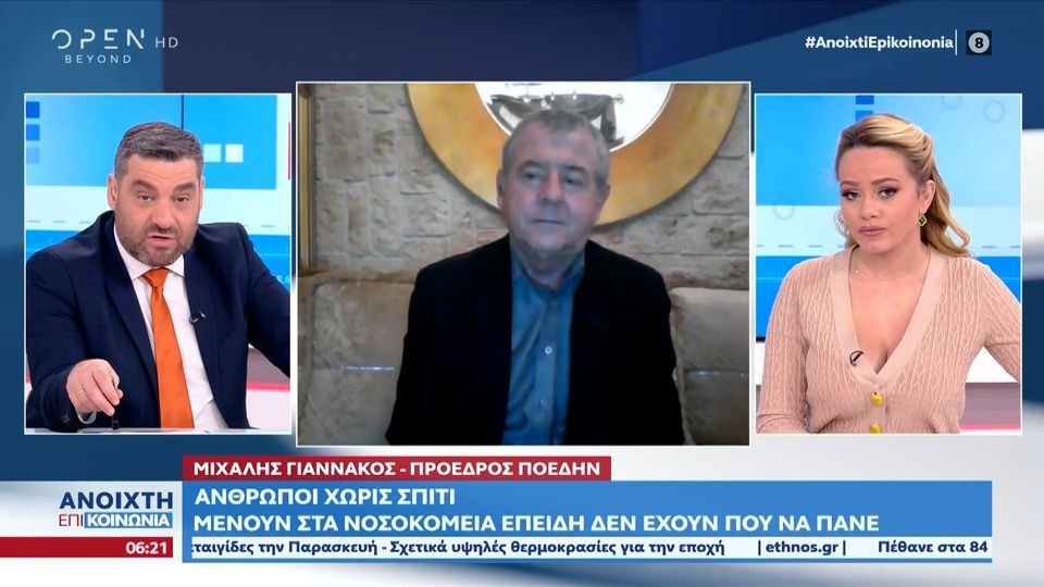 Όπως είπε στο OPEN και την εκπομπή «Ανοιχτή Επικοινωνία» ο πρόεδρος της ΠΟΕΔΗΝ, Μιχάλης Γιαννάκος, «τα νοσοκομεία αντιμετωπίζουν ένα μείζον κοινωνικό ζήτημα που δεν είναι εύκολο στη διαχείρισή του από τις κοινωνικές υπηρεσίες. Υπάρχουν ασθενείς που εισάγονται, αντιμετωπίζουν σοβαρά οικονομικά προβλήματα και όταν αποκατασταθεί η υγεία τους αρνούνται να πάρουν εξιτήριο. Φυσικά οι γιατροί δεν μπορούν να τους πετάξουν στον δρόμο».