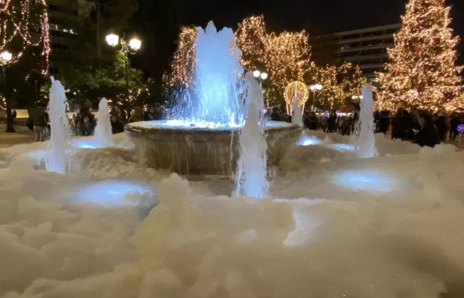 Αφρούς γέμισε η πλατεία Συντάγματος καθώς το σιντριβάνι … άφρισε.