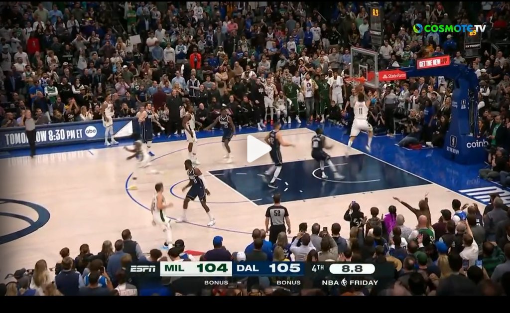 Συγκλονιστικό παιχνίδι στο Ντάλας, με τους Μπακς να παίρνουν στο τέλος την νίκη με 106-105 κόντρα στους Μάβερικς χάρη σε καλάθι του Μπρουκ Λόπεζ